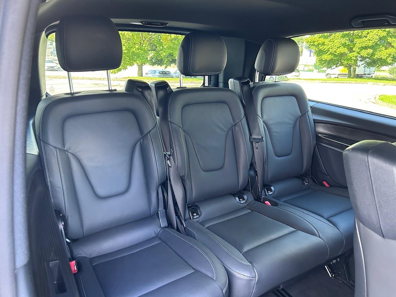 • accoudoirs pour sièges d''habitacle• alarme antivol• attention assist : système de détection de somnolence• banquette confortable 3 places 1re rangée avec siège extérieur rabattable• banquette confortable 3 places 2e rangée avec siège extérieur rabattable• boîte à gants verrouillable• caméra de recul• Capteur de pluie• chauffage d''appoint électrique• climatisation, semi-automatique, tempmatic• climatisation, semi-automatique, tempmatic à l''arrière• commande électrique de la porte coulissante, droite• commande électrique de la porte coulissante, gauche• cuir lugano, noir• diagonale de l''écran 26 cm (10,25")• hayon easy-pack• jantes en alliage léger, 7,0jx17, design à 5 branches doubles• lunette arrière à ouverture séparée• marque de pneus michelin• miroirs de courtoisie éclairés pour pare-soleil• module de communication (lte) pour services numériques• navigation gps• pack aérodynamique• parktronic• peinture métallisée• pneus m+s 235/55 r17 rf• porte coulissante à gauche• prise 12 v dans le coffre / compartiment de chargement• radio numérique (dab)• régulateur de vitesse• réservoir principal 70 litres• rétroviseur extérieur à atténuation automatique• rétroviseur extérieur rabattable automatiquement• rétroviseurs extérieurs, chauffants, électr. adj. avec indic. intégré• siège chauffant pour le conducteur• siège chauffant pour le copilote• siège conducteur confort• siège passager confort• surveillance de la pression des pneus avant/arrière, sans fil• suspension agility control• système d''appel d''urgence mercedes-benz• système de lave-glace chauffant• système de rail de siège à verrouillage rapide• système multimédia mbux mid• transmission intégrale permanent• volant multifonction avec ordinateur de bord• volant réglable en hauteur et en inclinaison
