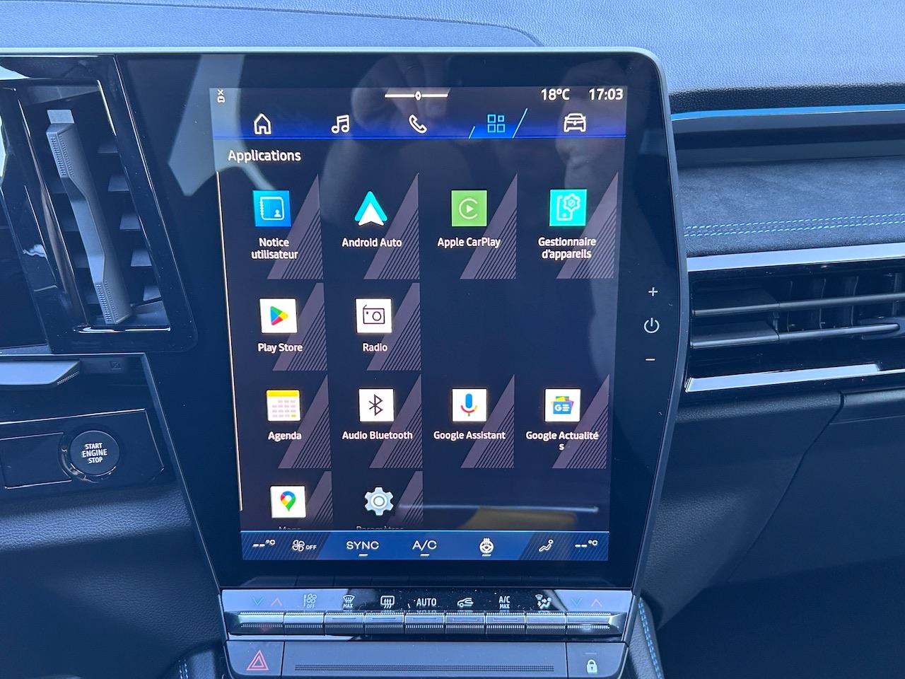• aide au freinage d''urgence• aide au parking av/ar et lateral• alerte de distance de sécurité• alerte detection de fatigue• alerte franchissement de ligne et assistant maintien dans la voie• appel d''urgence• banquette ar 1/3 2/3• barres de toit longitudinales• caméra de recul• carte renault acces et demarrage mains libres• chargeur smartphone a induction• climatisation automatique bi-zone• commutation automatique des feux de route/croisement• detection intelligente des limitations de vitesse et prevention survitesse• faux plancher de coffre• feux ar a led avec effet 3d• feux av full led adaptative vision• feux de jour à led• frein de parking electrique avec fonction auto-hold• hayon motorise• jantes alliage 20" daytona diamantees noir• kit de gonflage• leve-vitres ar electriques a impulsion• leve-vitres av electriques a impulsion• Multi-sense• my safety switch• navigation google maps• pack safety : assistance au maintien de voie d''urgence avec avertissement et correction de direction en fonction de la circulation venant de l''arrière ou en sens inverse et de la sortie potentielle dans le paysage. comprend l''assistance aux angles morts +• peinture bi-ton nacré• régulateur de vitesse adaptatif• rétroviseur intérieur électrochrome sans cadre• retroviseurs exterieurs electriques, degivrants, rabattables automatiquement• siège conducteur et passager avec réglage en hauteur• sieges avec systeme isofix• systeme de surveillance de la pression des pneus• systeme multimedia openr link 12" : navigation, services google, audio arkamys auditorium• vitres ar surteintees• volant chauffant• volant réglable en hauteur et profondeur